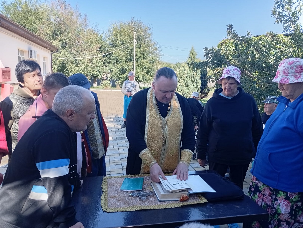 Проведено Богослужебное таинство общей исповеди, после которого отец Олег провел беседу с проживающими о православной жизни, её канонах и традициях, о значении молитвы, важности следования христианским заповедям и духовному росту.